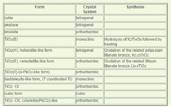 Titanium dioxide has eight modifications - in addition to rutile, anatase and brookite there